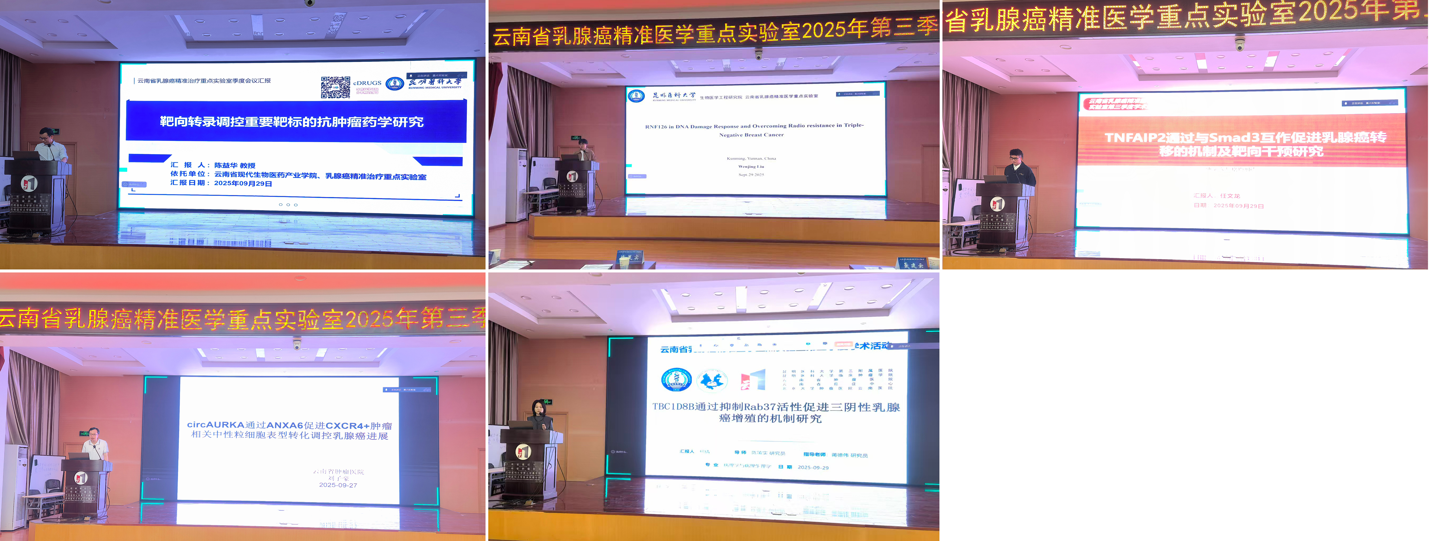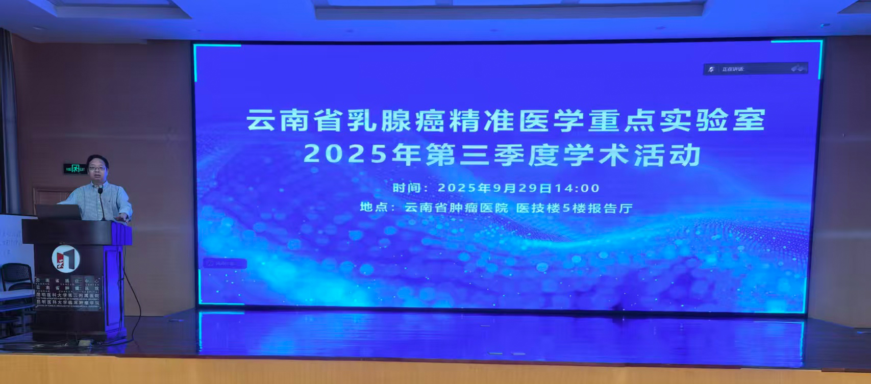 2025年9月29日,云南省乳腺癌精准医学重点实验室在云南省肿瘤医院医技楼5楼报告厅成功举办了2025年第三季度学术活动。重点实验室主任陈策实、副主任李富兵、黄胜,实验室各研究方向负责人,科研骨干以及bat365在线平台和云南省肿瘤医院在读硕博等80余人参与活动。会议开幕式由黄胜副主任主持,陈策实主任致辞,陈策实主任强调重点实验室在第三季度中在学术成果产出以及科研项目获得方面均取得了优异的成绩,鼓励大家再接再厉,弥补不足,持续为重点实验室的建设添砖加瓦。