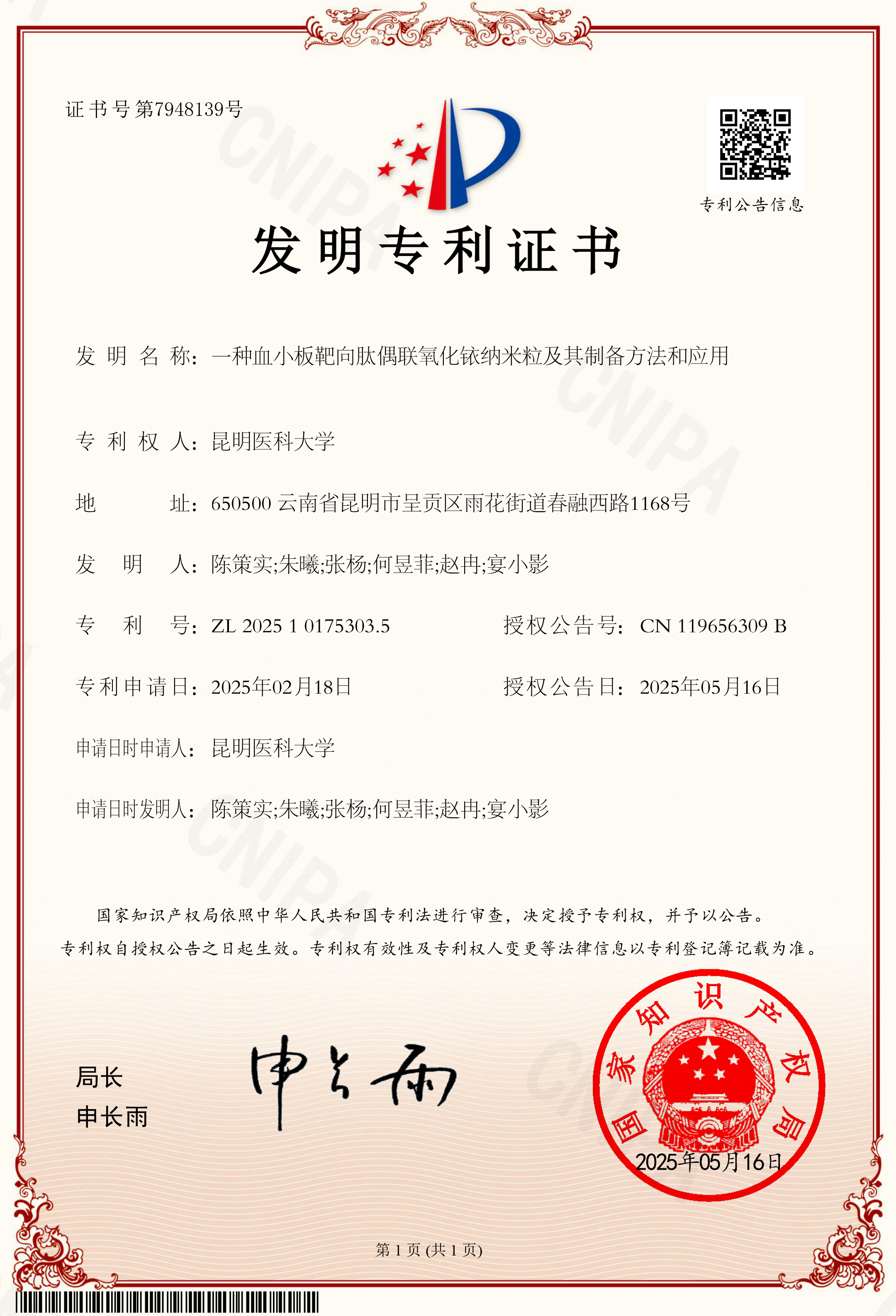 该研究成果以“Self-enriching nanozyme with photothermal-cascade amplification for tumor microenvironment-responsive synergistic therapy and enhanced photoacoustic imaging”为题,于 2025 年 8 月23日在线发表于Materials Today Bio(一区TOP,IF = 10.2)。bat365在线平台生物医学工程研究院讲师朱曦、山东第一医科大学附属省立医院超声科副研究员张杨、bat365在线平台基础医学院本科生何昱菲为论文共同第一作者。bat365在线平台生物医学工程研究院陈策实研究员为论文通讯作者。该项研究得到国家自然科学基金委、国家重点研发计划项目、云南省科技厅等项目的资助。此外,该研究成果也于2025年5月16日获得国家发明专利授权。