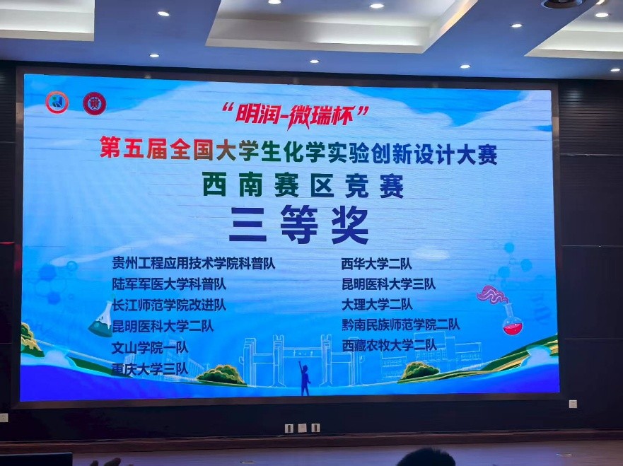 近日,由教育部高等学校化学教育研究中心和高等学校国家级实验教学示范中心联席会主办、贵州大学承办的第五届全国大学生化学实验创新设计大赛“明润-微瑞杯”西南赛区竞赛在贵阳市落幕。