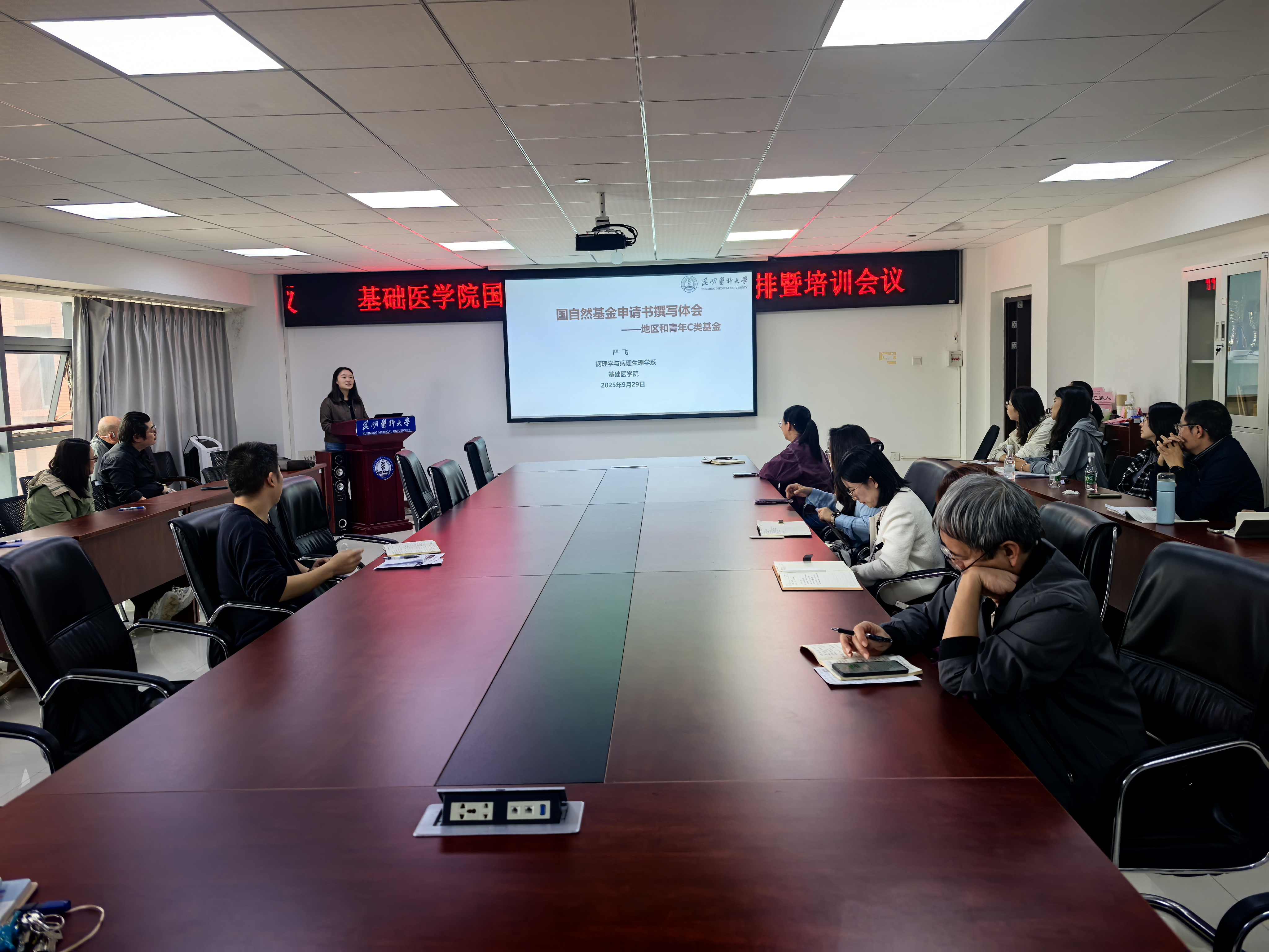 2025年9月29日,bat365在线平台基础医学院在东苑基础医药大楼614会议室召开学院2026年国家自然科学基金申报工作安排暨第一次申报专题培训会议。会议由学院分管副院长李盛安主持,各系(中心)中层干部以及全院45周岁以下博士学历教师参会。