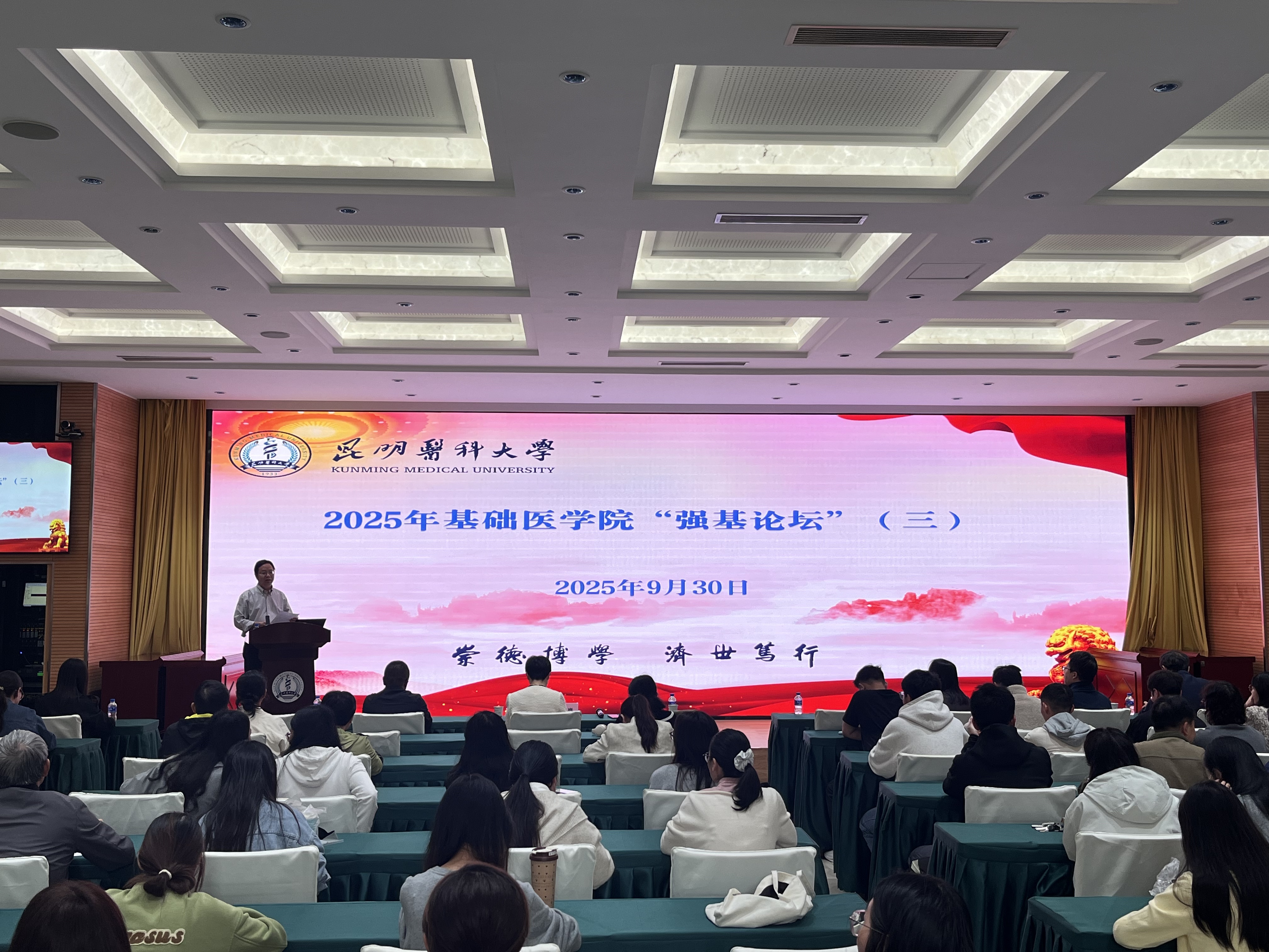 2025年9月20日,bat365在线平台基础医学院成功举办2025年强基论坛(三)。本次论坛由生物医学工程研究院院长陈策实与基础医学院副院长邹英鹰共同主持,全校教师代表、基础医学院在昆研究生及本科生代表参会,围绕医学领域关键科学问题,共话前沿研究成果与未来发展方向。