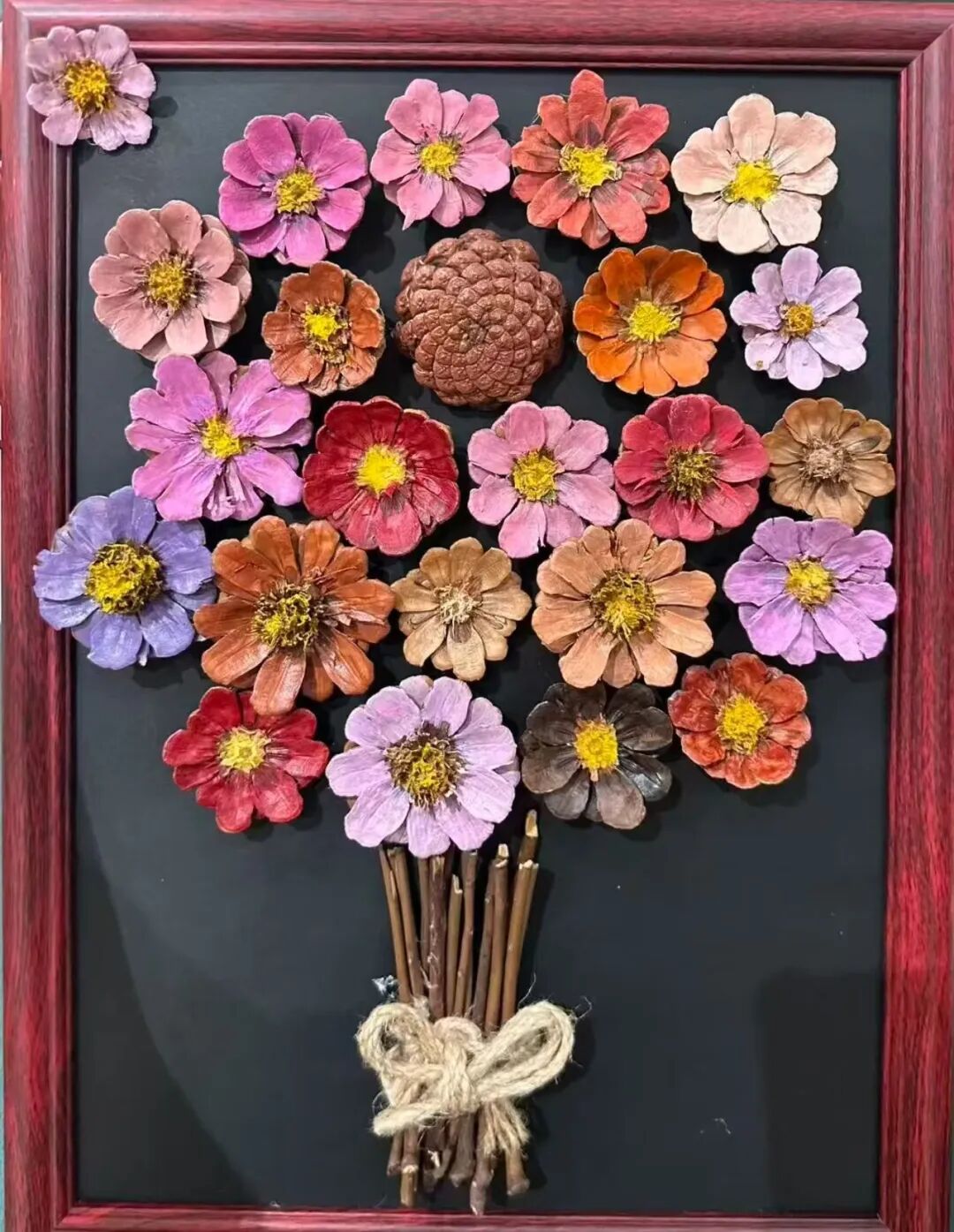 一等奖获得者孙颖分享道:“在这次比赛中,我们用松果制成花束,致敬先烈。不仅锻炼了动手能力、激发了创造力,更让我体会到劳动之美,懂得了珍惜劳动成果。未来我将继续传承劳动精神,努力创造美好。”其队友田萍粼表示:“‘松果凝心·致敬先烈’这件作品是我们默契协作的成果。剪松果、涂花瓣,每一个步骤都让我们更加理解何为劳动美。作品虽小,却承载着我们深深的敬意。”