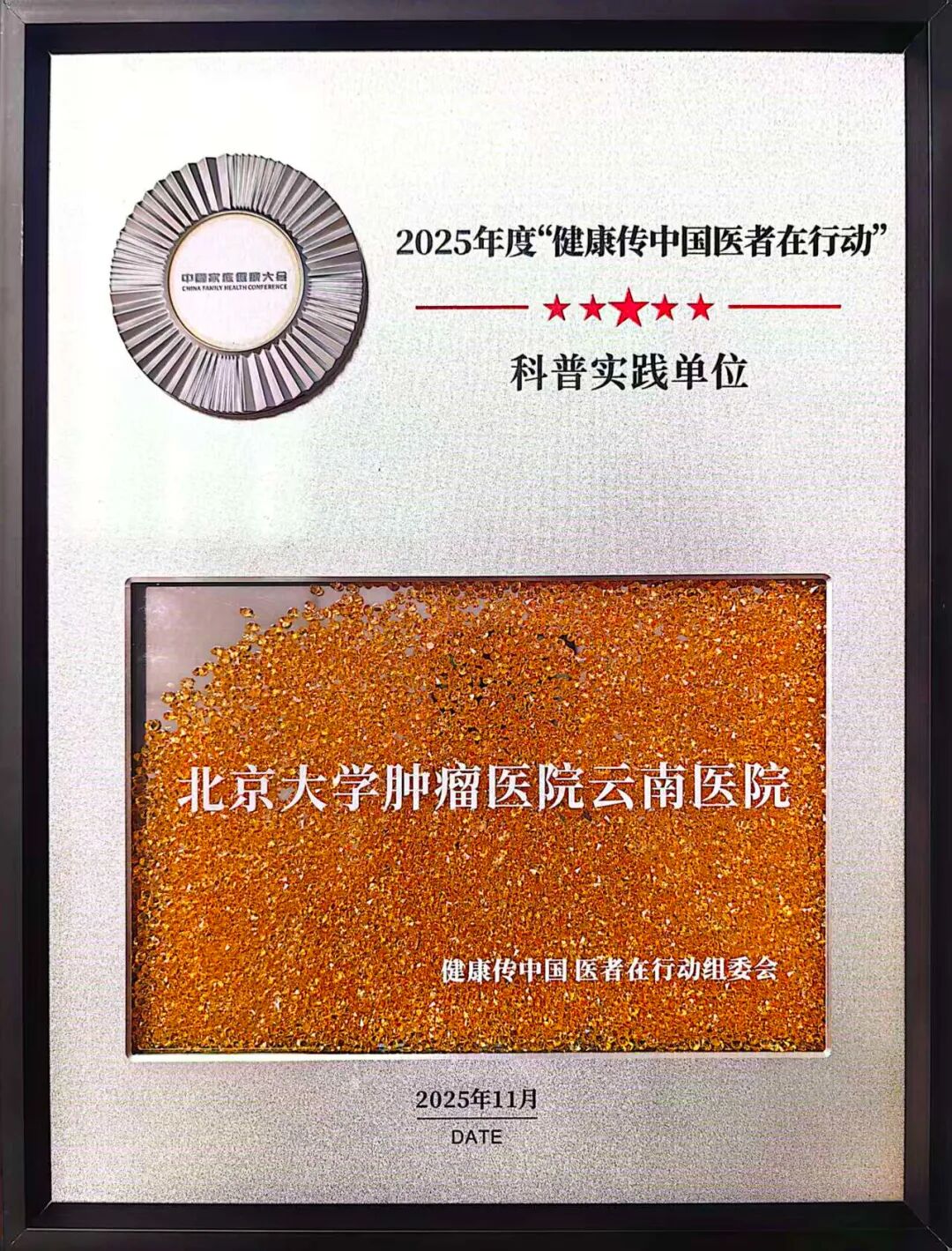 11月27日,2025年“强基赋能 共筑健康家庭”中国家庭健康大会在北京召开。北京大学肿瘤医院云南医院 云南省肿瘤医院 bat365在线平台第三附属医院被授予2025年“健康中国医者在行动”科普实践单位称号。
