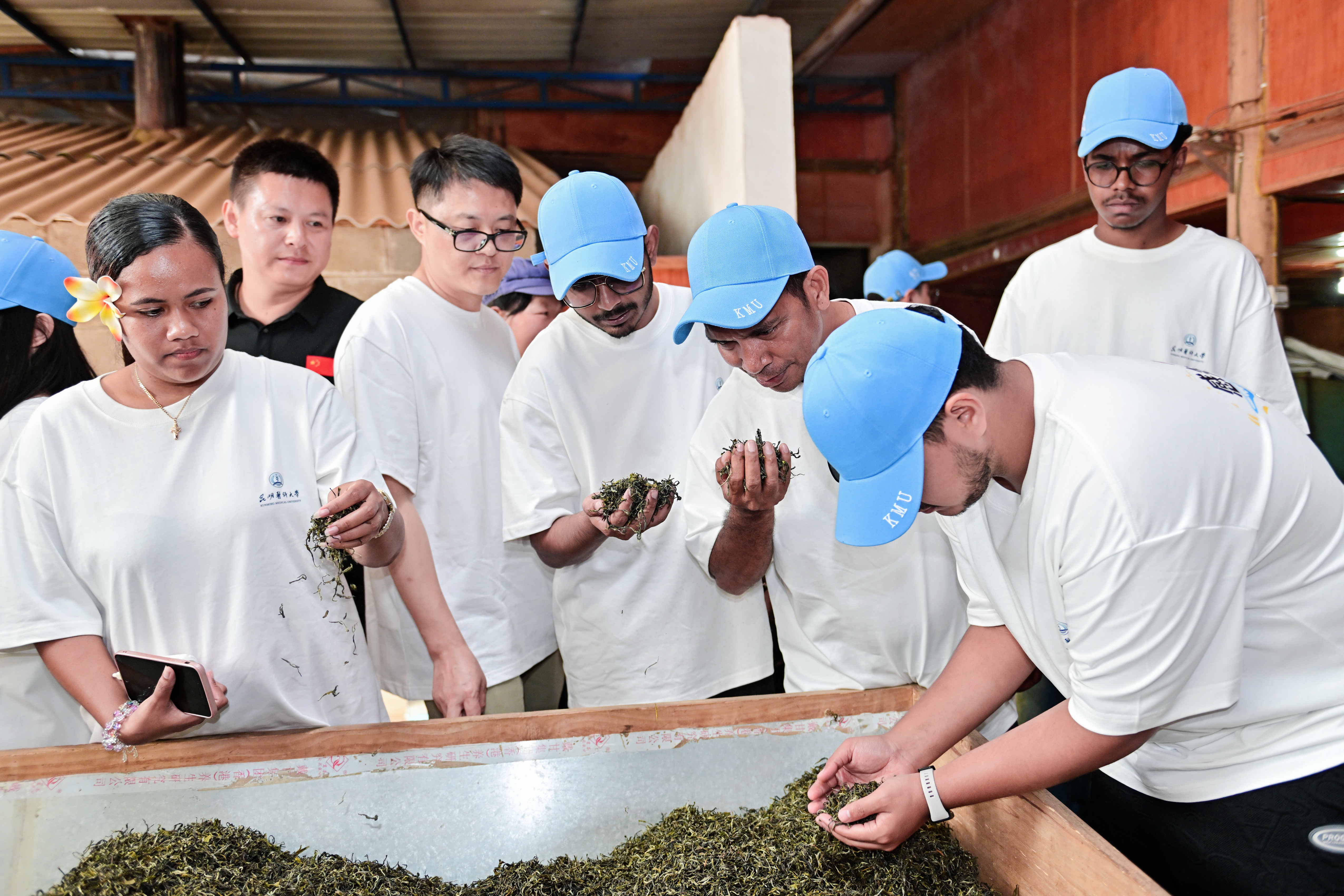 在bat365在线平台定点帮扶的保山市龙陵县象达镇,留学生们深入乡村产业一线,探寻特色产业助力乡村振兴的密码——“中国第九大仙草之一”的石斛。从象达镇石斛种植基地到bat365在线平台教育发展基金会资助建立的“仿野生石斛种植示范点”,再到龙陵县石斛花卉交易展示中心,留学生们学习了解了石斛的功效价值、生长习性、规范化种植技术、产品加工和推广交易,一条集种植、交易、研发、推广、科普于一体的完整产业链清晰地呈现给师生们。师生们参观象达三绿茶厂,在了解茶叶杀青、揉捻、烘烤、打包的完整生产流程中,感受传统茶文化与现代制茶工艺的融合。实践活动让留学生们深刻理解中国“生态优先、绿色发展”的乡村振兴理念,更清晰地看到特色产业对乡村经济发展、农民增收的带动作用,深入了解中国乡村振兴战略的实践路径。