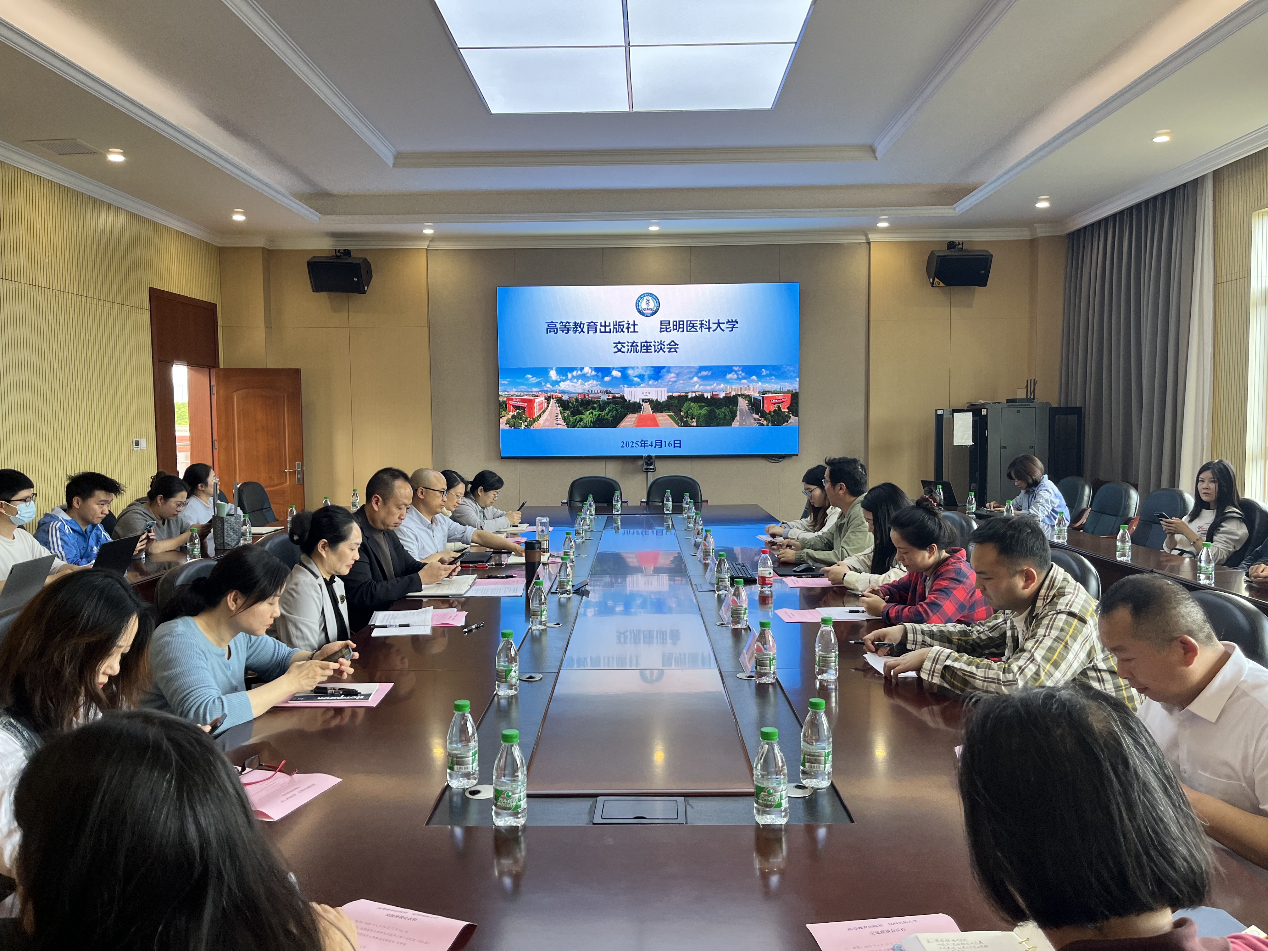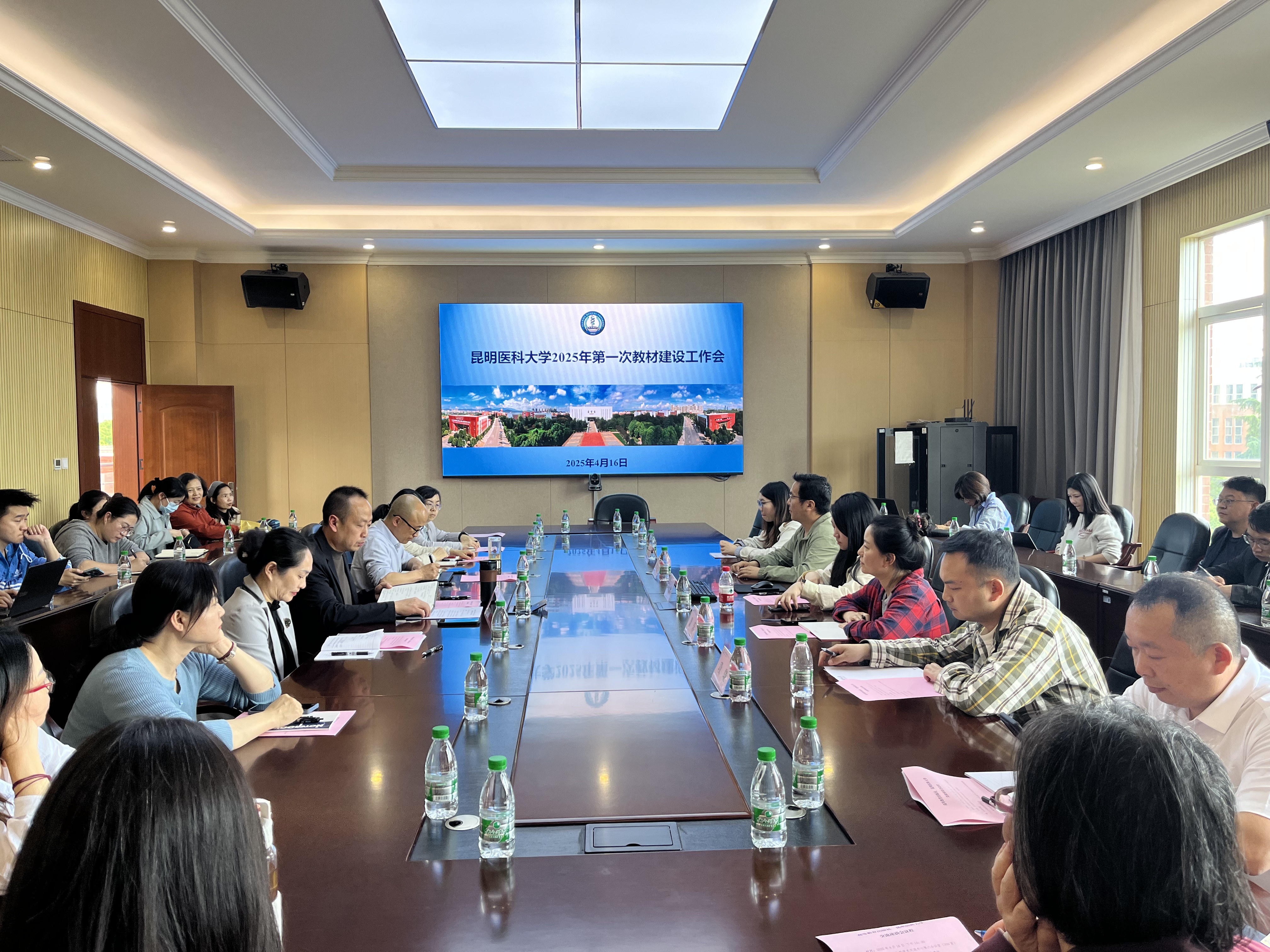 4月16日下午,2025年第一次教材建设工作会在呈贡校区召开。会上,教务处就学校2024年度教材建设情况进行了通报,对2025年教材建设、选用等工作进行安排部署;高等教育出版社高级编辑孙美玲作了《数字教材的实践与探索》专题分享,与会人员对学校教材建设工作开展座谈交流。
