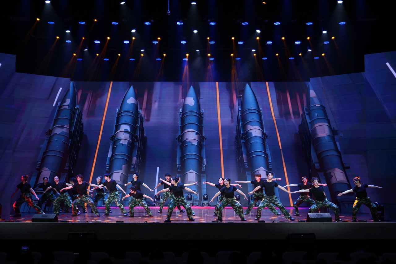 晚会第二篇章通过舞蹈、看照片 讲故事、舞台剧、音乐剧等形式,展现了在伟大抗战精神的指引下,中华民族在强国建设、民族复兴的道路上勇毅前行,中国共产党和中国人民正信心百倍推进中华民族从站起来、富起来到强起来的伟大飞跃,以艺术形式生动描绘了昆医人将个人理想融入民族复兴伟业,传承红色薪火,在乡村振兴、志愿服务支教中书写报国篇章。