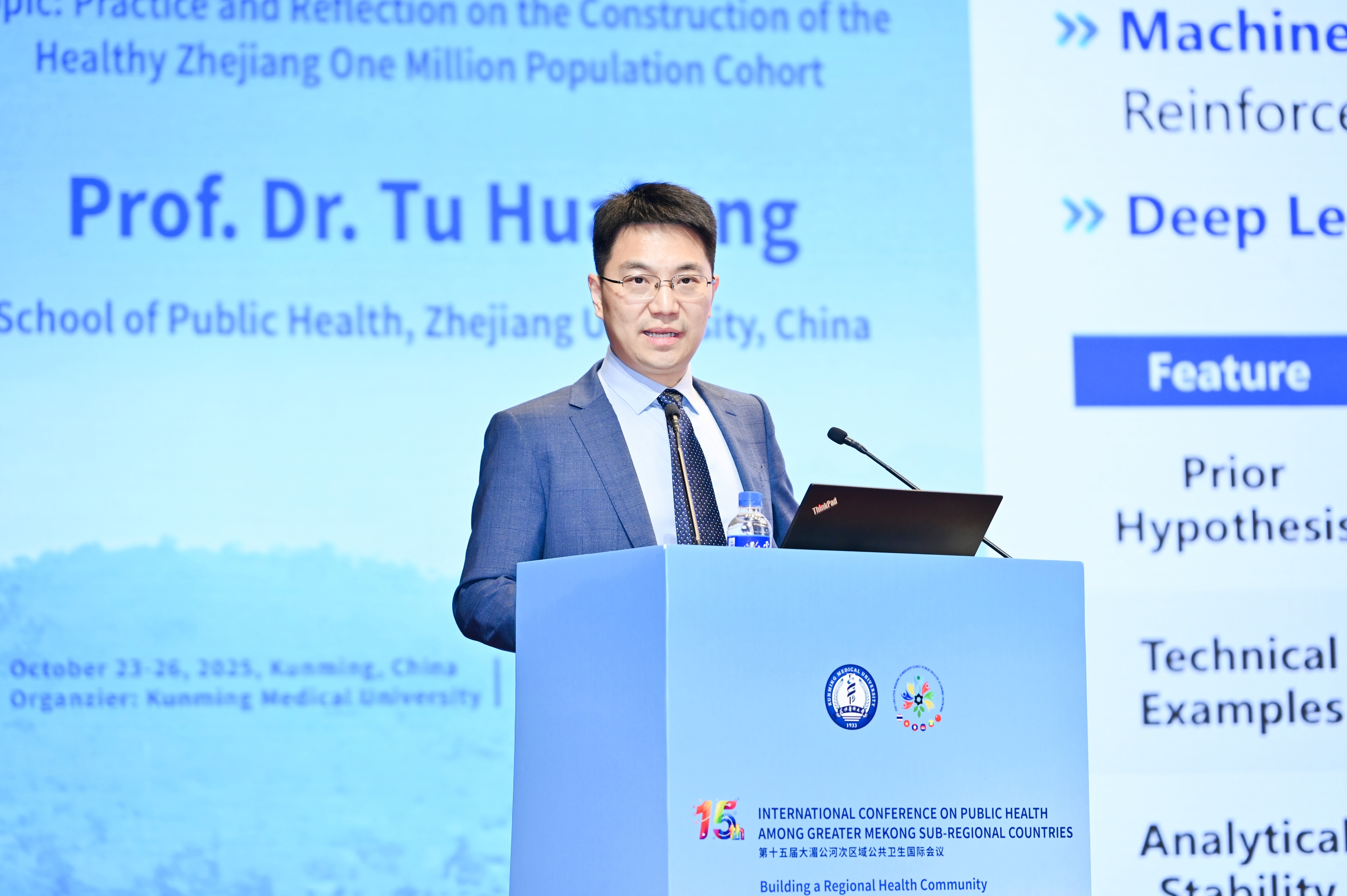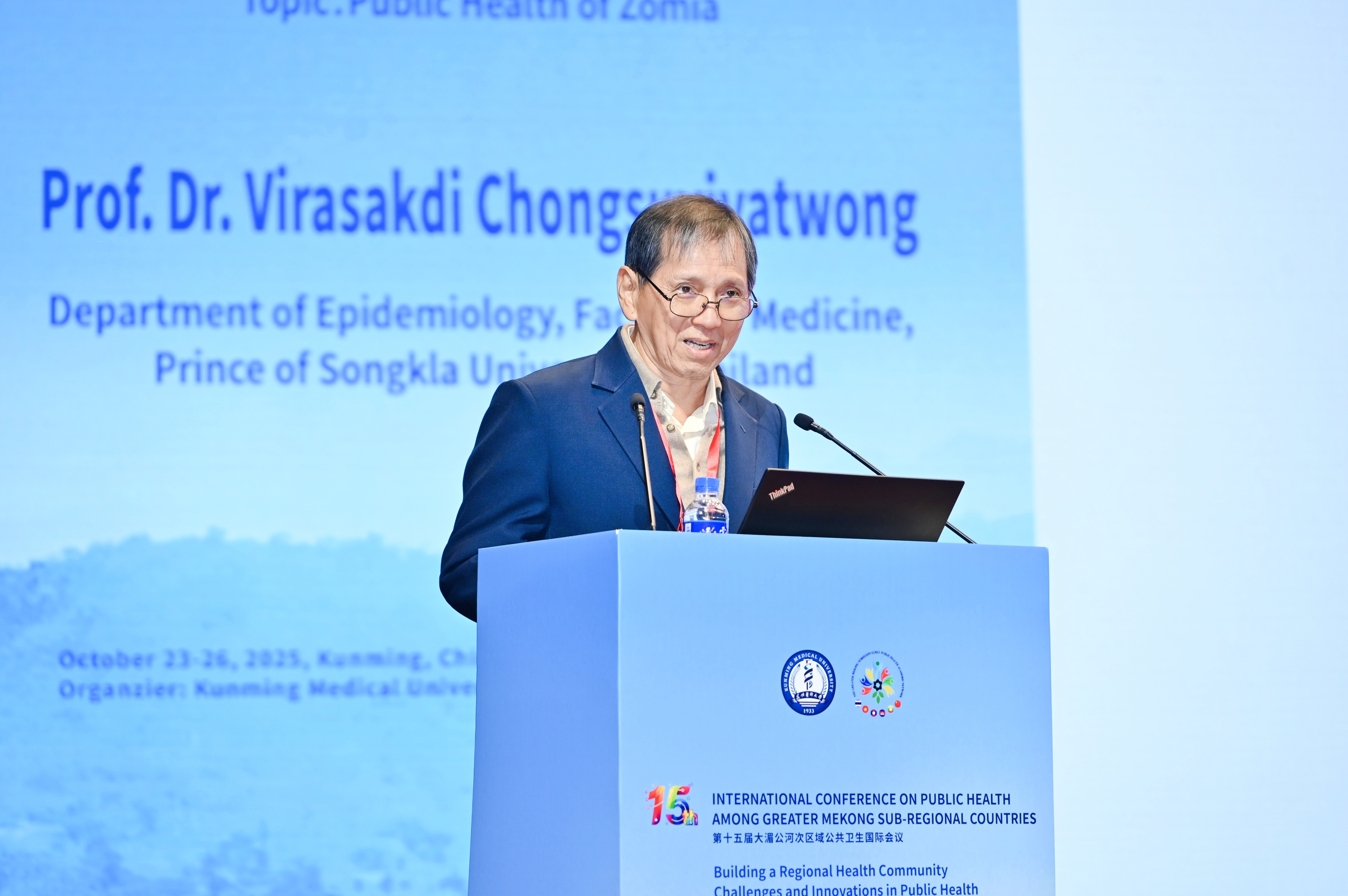 开幕式结束后,4位国际知名专家分别作主旨报告,分享公共卫生前沿领域的最新研究成果与深刻思考。夏雪山以“全球健康——传染病的跨种和跨境传播规律”为主题作报告,深入剖析了当前全球健康背景下,传染病跨物种传播、跨境扩散的关键机制与影响因素,并结合大湄公河次区域实际情况,提出针对性的防控策略。泰国孔敬大学公共卫生学院院长Wongsa Laohasiriwong教授聚焦“湄公河次区域国家中老年群体的健康不平等现象”,揭示了次区域各国在中老年群体健康保障方面存在的差异与问题,呼吁各国加强合作,完善健康服务体系,切实改善该群体健康状况。浙江大学公共卫生学院全球卫生中心涂华康教授围绕“健康浙江百万人群队列建设实践与思考”展开分享,介绍了“健康浙江”建设中百万人群队列的构建思路、实施过程与阶段性成果,为次区域各国开展大规模人群健康研究、制定精准公共卫生政策提供了宝贵经验。泰国宋卡王子大学医学院流行病学系Virasakdi Chongsuvivatwong教授以“Zomia(赞米亚)公共卫生”为主题,结合亚洲东南高地独特的地理、人文与社会环境,分析了该区域公共卫生工作面临的特殊挑战,并提出符合区域实际的公共卫生干预策略。