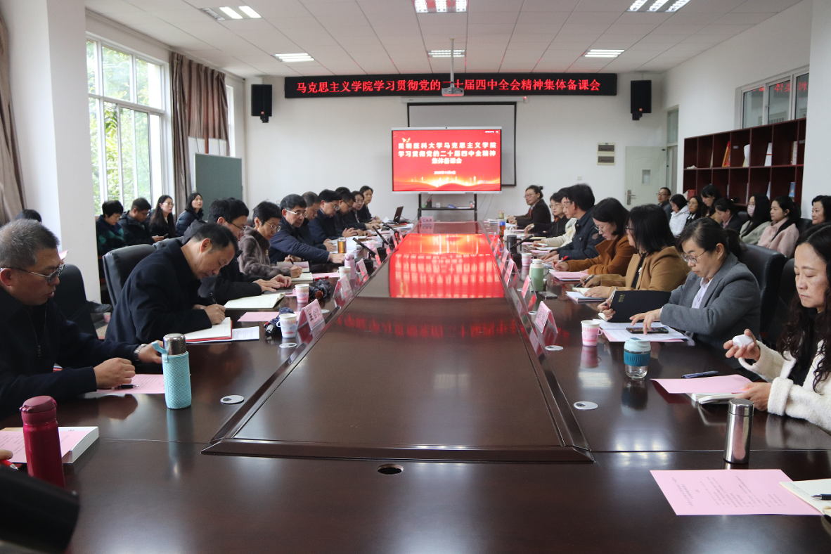 马克思主义学院高度重视党的二十届四中全会精神的学习贯彻。10月30日学院党委理论学习中心组进行了专题学习,并对全院的学习贯彻工作作出了安排,各教研室(中心)结合各自课程的教学实际组织了集体备课。学院集体备课会后,党的二十届四中全会精神课堂宣讲教学工作将在思政课中全面展开。