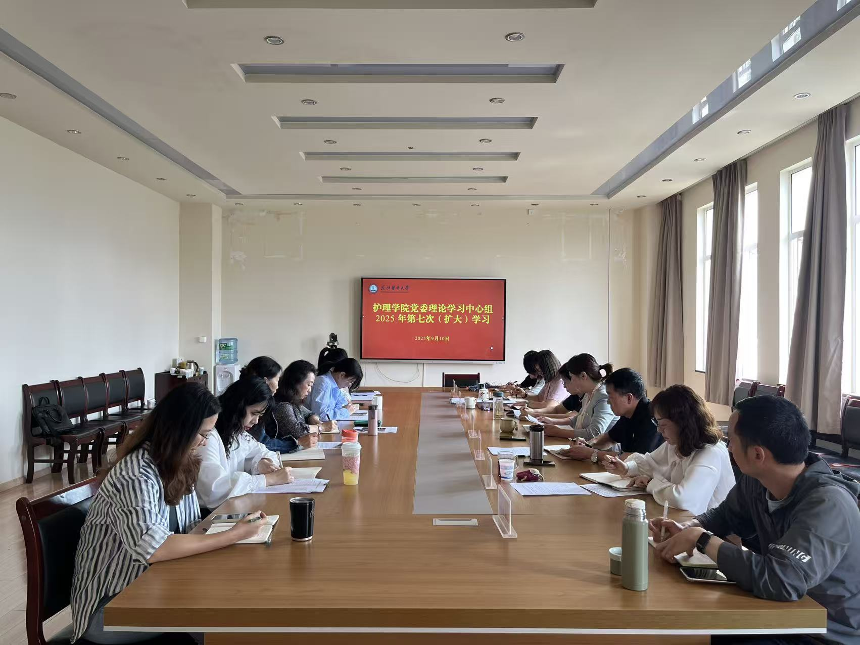 2025年9月10日,护理学院党委理论学习中心组开展第七次(扩大)学习。会议集中学习了习近平总书记回信勉励全国特岗教师代表的重要内容,以及习近平总书记在纪念中国人民抗日战争暨世界反法西斯战争胜利80周年大会上的重要讲话、习近平总书记在山西考察时重要讲话,以及习近平总书记关于统一战线、民族和宗教工作的重要思想和论述等内容。bat365在线平台党委常委、副校长奚春睿列席会议。学院党委书记杨国华主持并领学相关内容。