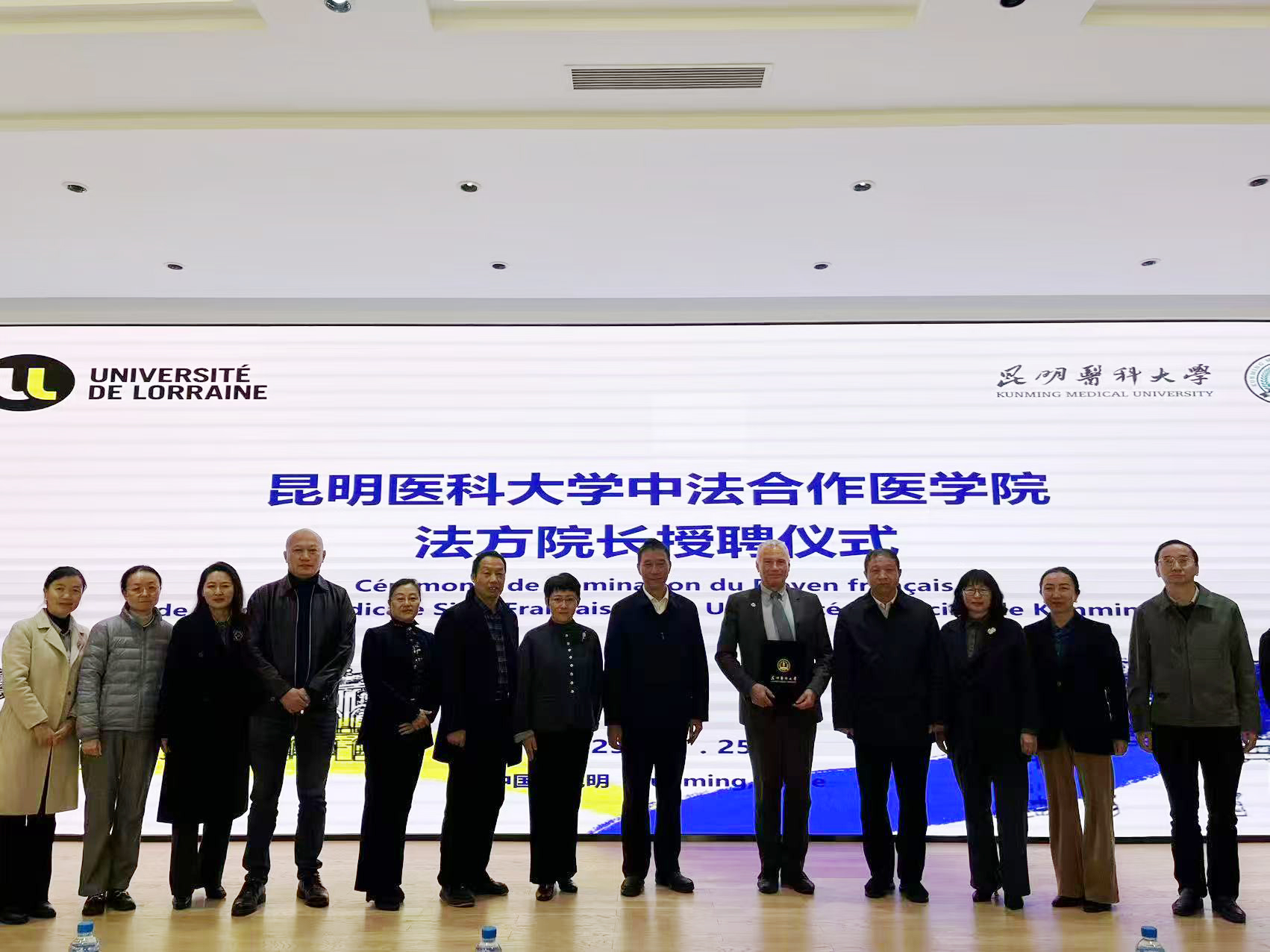 2025年11月25日上午,bat365在线平台在呈贡校区学术交流中心第二报告厅举行中法合作医学院法方院长授聘仪式,并邀请法国洛林大学南锡医学院荣誉院长Marc Braun(马克·布劳恩)教授作专题讲座。此次活动标志着学校在推进中法医学教育合作和国际化办学方面迈出重要一步。