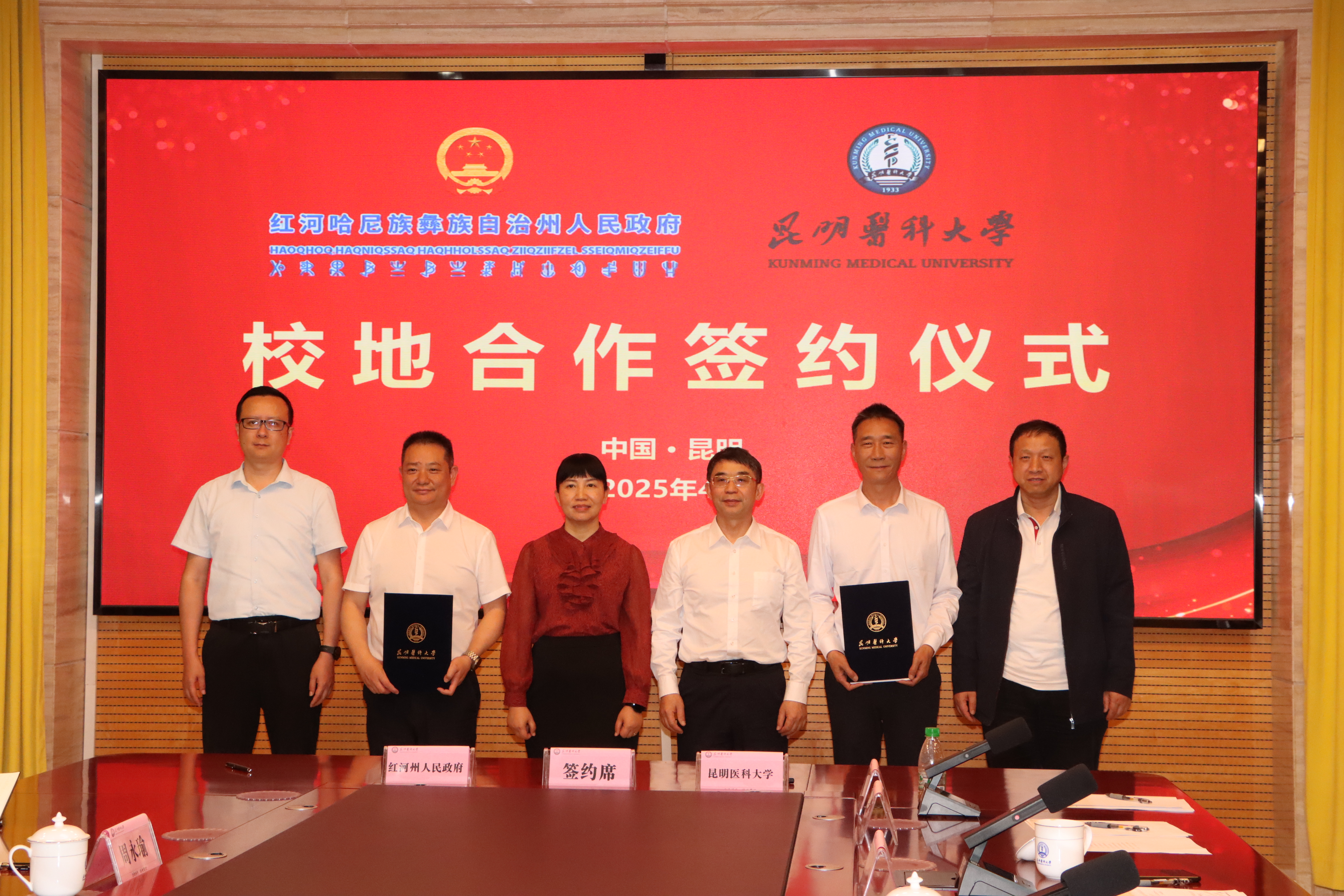 4月28日,bat365在线平台与红河哈尼族彝族自治州人民政府(以下简称红河州人民政府)在bat365在线平台签订校地合作协议。红河州委副书记、州长罗萍,副州长周永瑜;bat365在线平台党委书记尹向阳,校长夏雪山,党委常委、副校长李利华出席签约仪式。