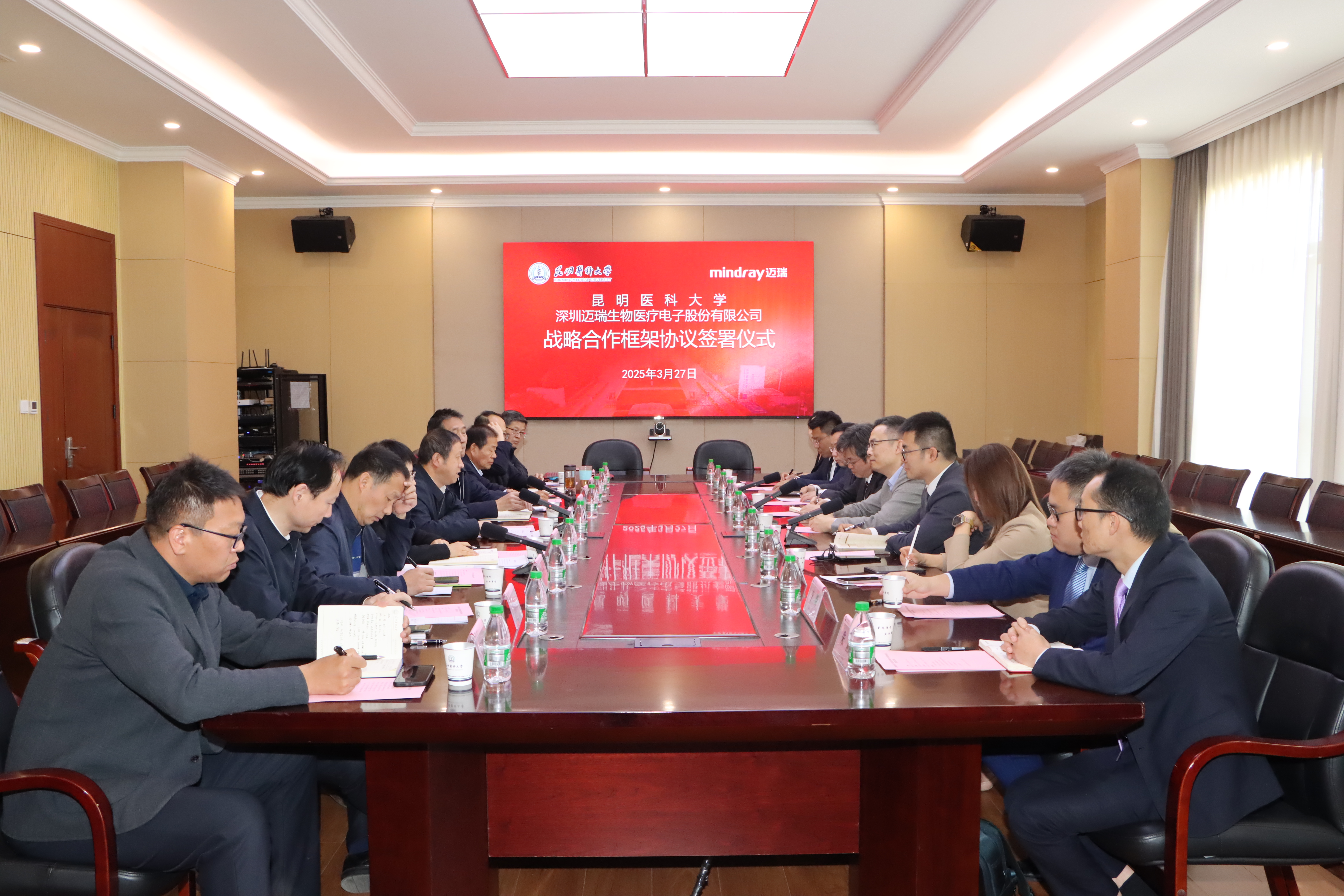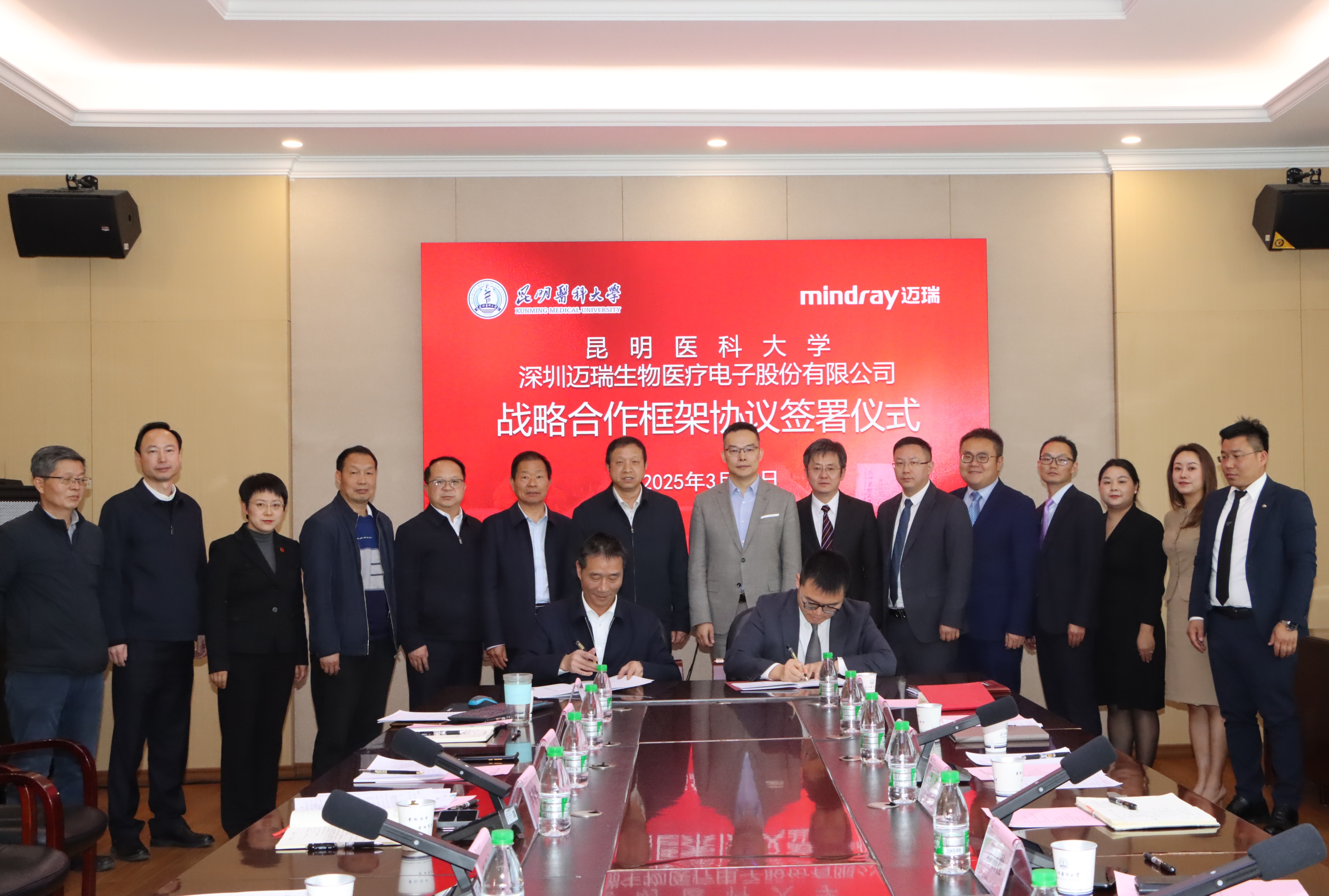 3月27日上午,bat365在线平台与深圳迈瑞生物医疗电子股份有限公司(以下简称迈瑞医疗)战略合作框架协议签署仪式在bat365在线平台呈贡校区举行。bat365在线平台校长夏雪山,党委常委、副校长李利华;迈瑞医疗中国区总经理黄鹏程、昆明分公司总经理辜锐、中国区公立客户市场经理曾晖出席签约仪式。学校和迈瑞医疗昆明分公司相关部门负责人参加签约仪式。李利华主持签署仪式。