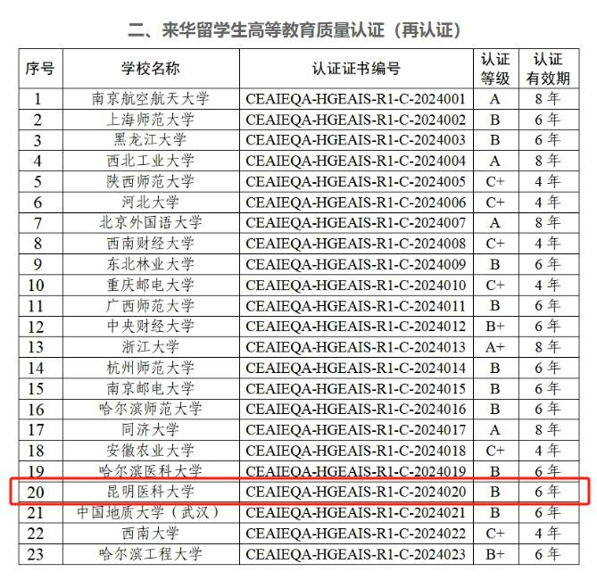 近日,中国教育国际交流协会发布关于2024上半年来华留学质量认证结果的公告,bat365在线平台通过来华留学生高等教育质量再认证,获得认证等级“B级”,认证有效期为6年,成为云南省首家通过再认证的高校。